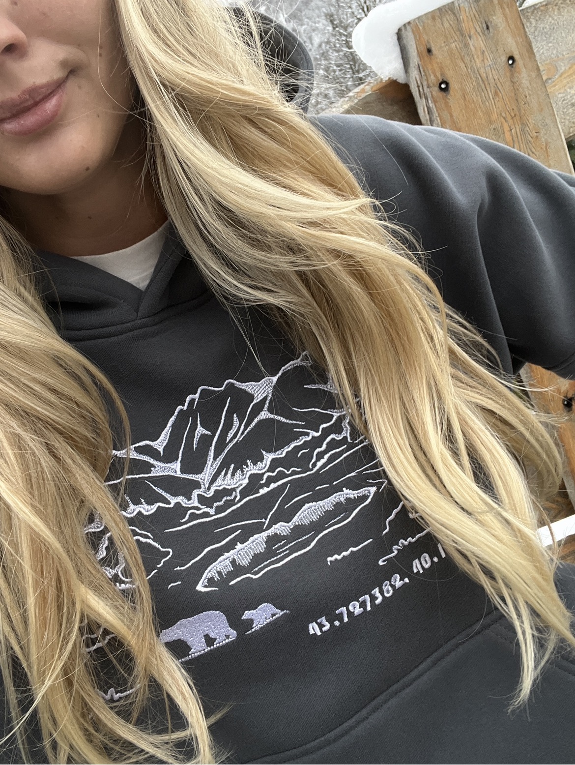 Худи молочный с начёсом с вышивкой «Озеро Зеркальное»